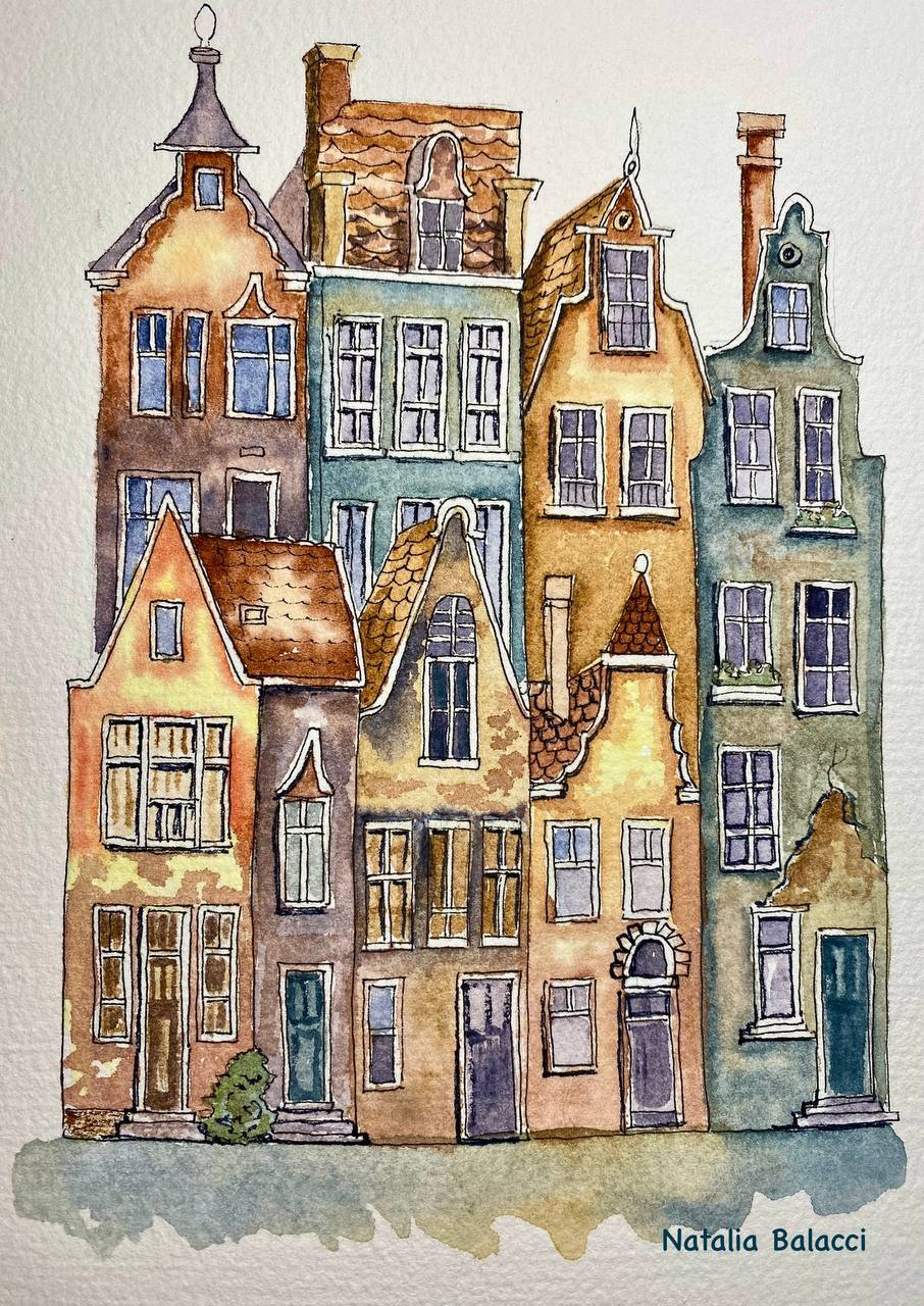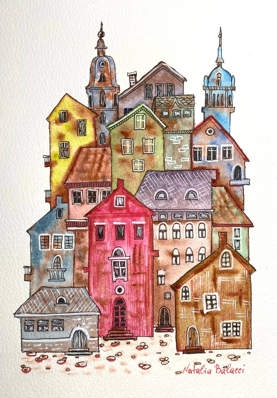На этом курсе разберем как рисовать разные фактуры акварелью для городского пейзажа.