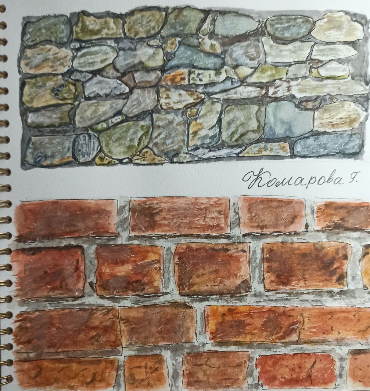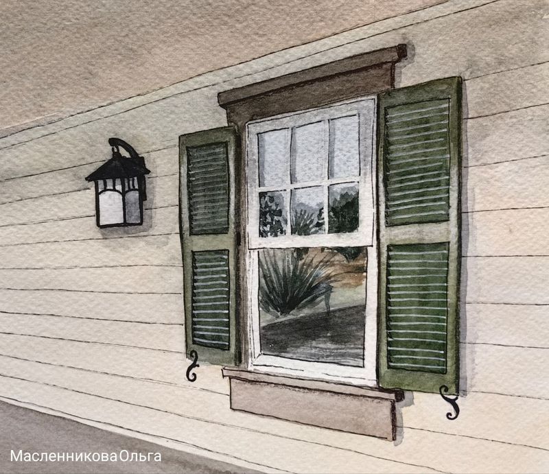 Учимся акварелью передавать разные фактуры кирпича, дерева, бетона, металла, ржавчины, оконных стекол...