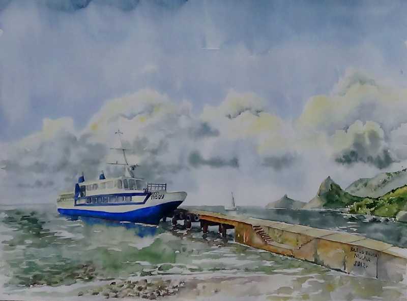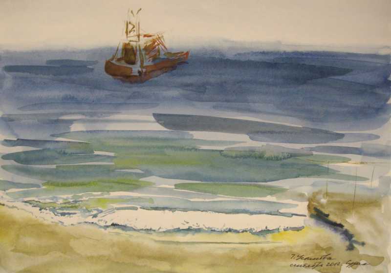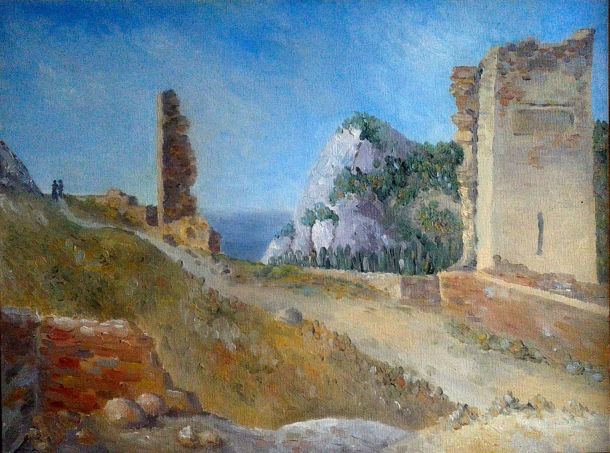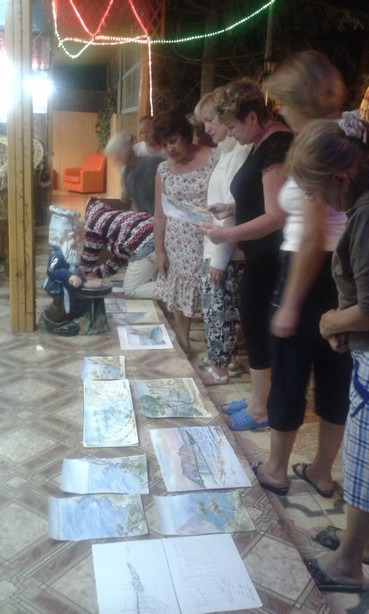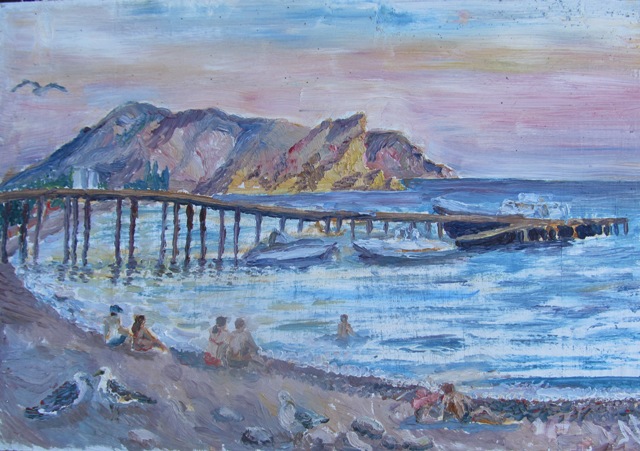 Ну и конечно сам пленер, когда такая натура перед глазами, что трудно выбрать, когда настолько увлекаешься процессом, что не замечаешь ни жаркого солнца, ни ветра, опрокидывающего этюдник, ни прохожих. Творить пристраивались прямо на скальных выступах, на пляже, на набережной, среди прохожих, на пороге комнаты, где жили. С раннего утра и до позднего вечера можно было видеть кого-нибудь из наших пленеровцев за планшетом. Практически любые фрукты, вынесенные к общему столу, воспринимались как объект для натюрморта. Такая сложилась творческая атмосфера.