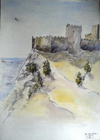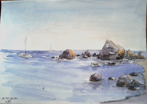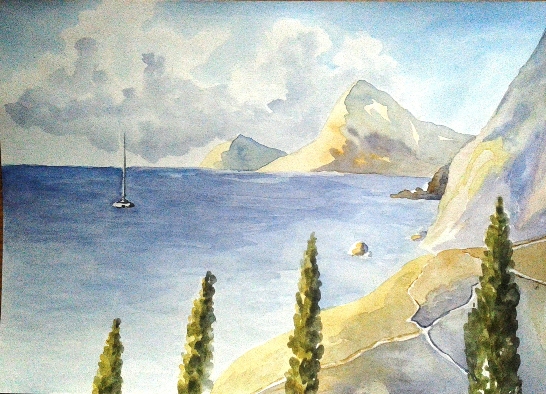 Место было выбрано живописное – и крепость, которая встречала нас прямо в окошке домика каждое утро, и небо голубое, глубокое, и море каждый день разное, переливчатое, разноцветное, живое. Там просто невозможно не открыть краски, не зарисовать все это многоцветие. Каждый день я просыпалась с мыслью – какая же я счастливая, что могу рисовать, могу сберечь и сохранить свои эмоции, свое настроение. Как я раньше жила без этого?