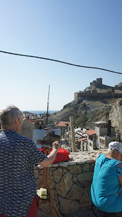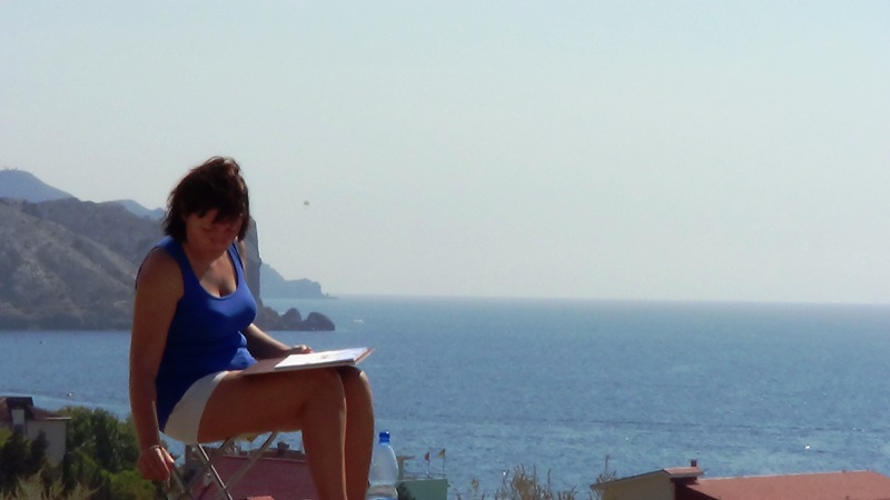 Дни были очень насыщенными, и в то же время их не хватало на все, что хотелось сделать. Успели съездить маленькой компанией из трех человек на Карадаг. Побывать там я мечтала почти 10 лет! Карадаг – это горный массив, возникший в результате извержения вулкана. Горные хребты, бескрайнее море с высоты птичьего полета и солнце. Красота неземная пропитывает до самых пяток и наполняет ветром и восторгом тело. Жалко, что порисовать там не удалось, темп экскурсии был энергичным. Зато узнала что местные ученые занимались не только изучением дельфинов, но и внеземными цивилизациями. О как!