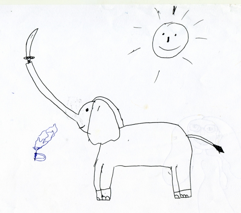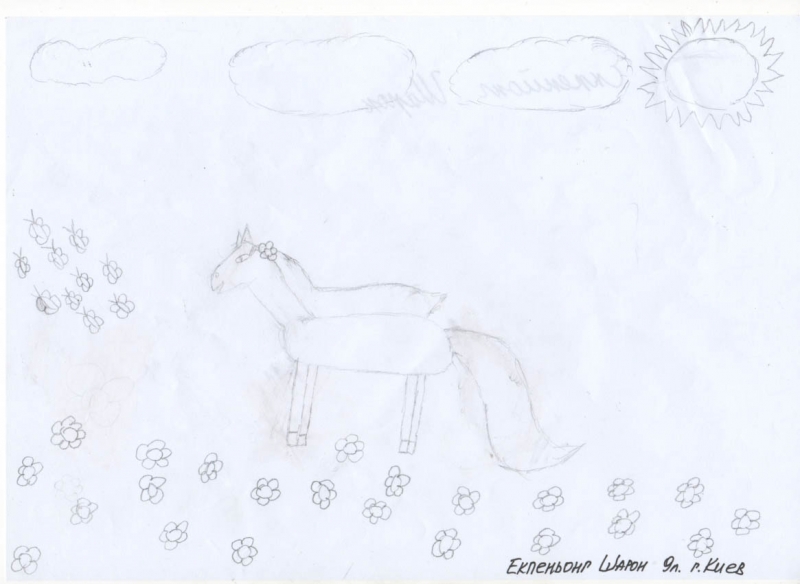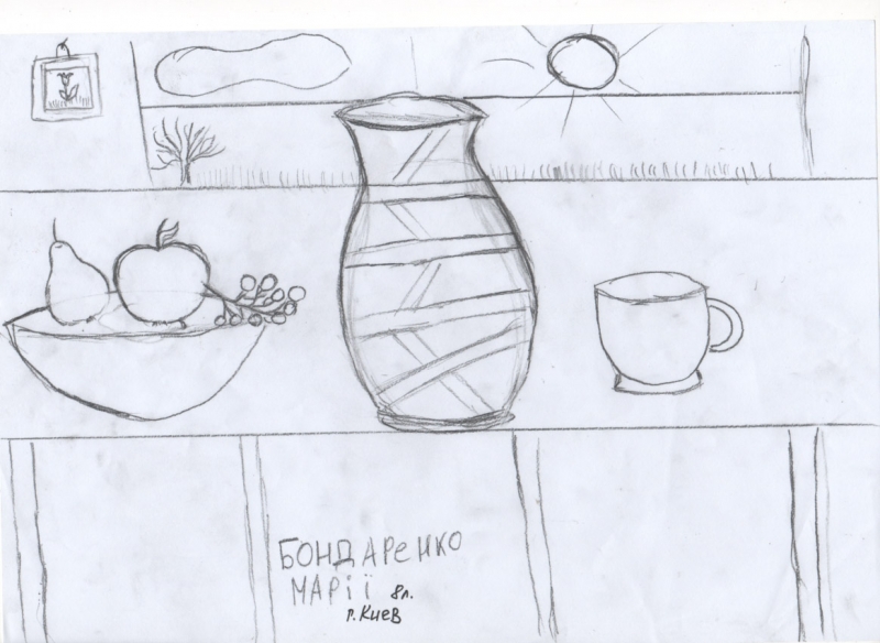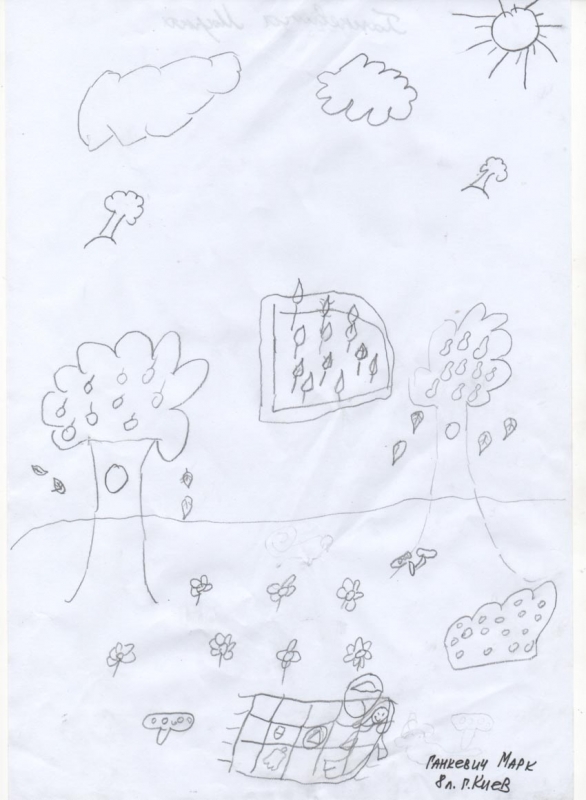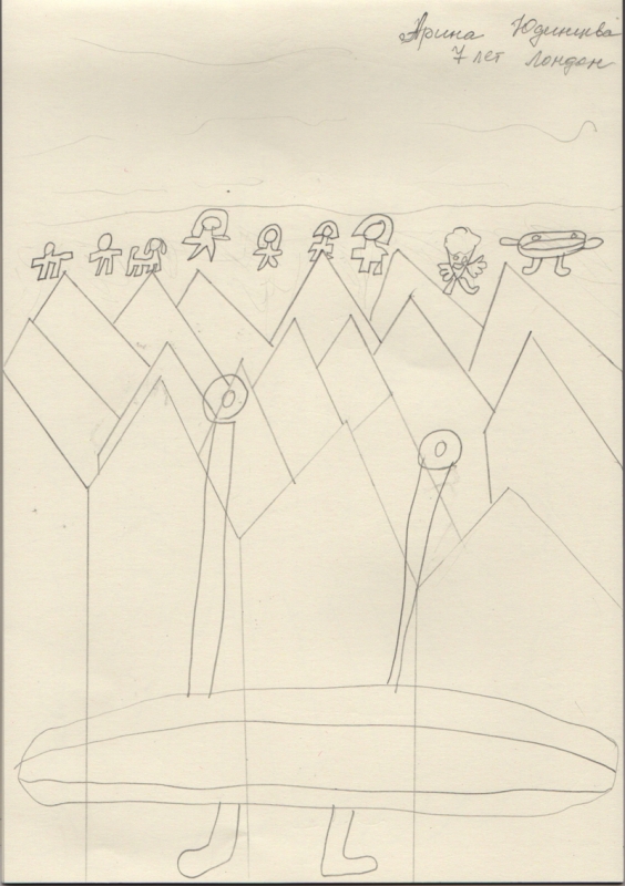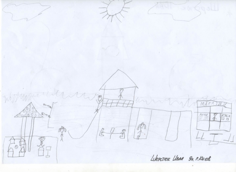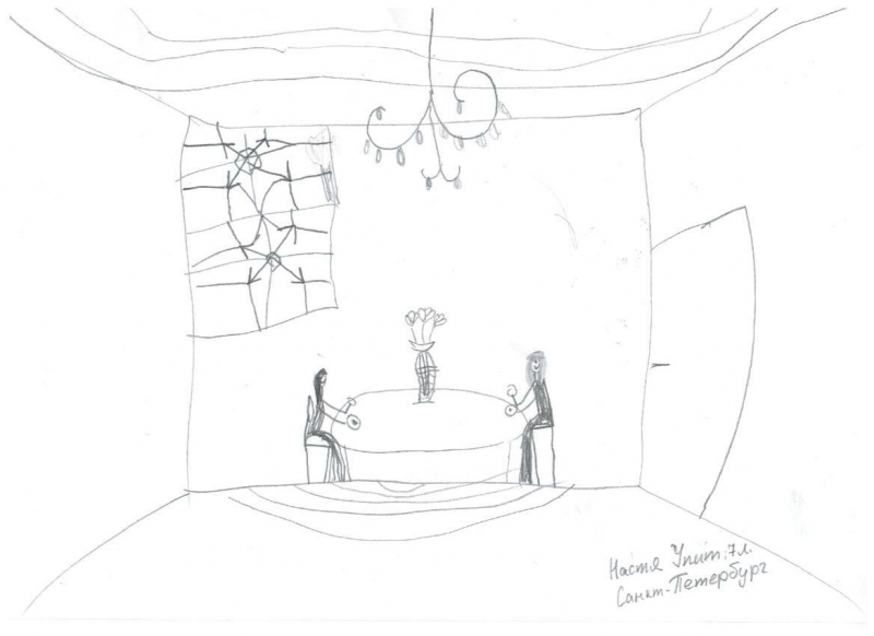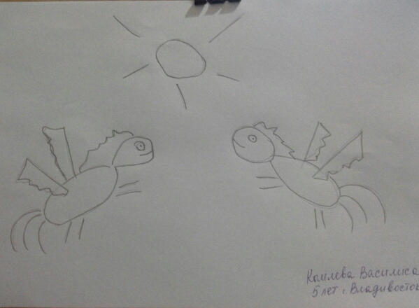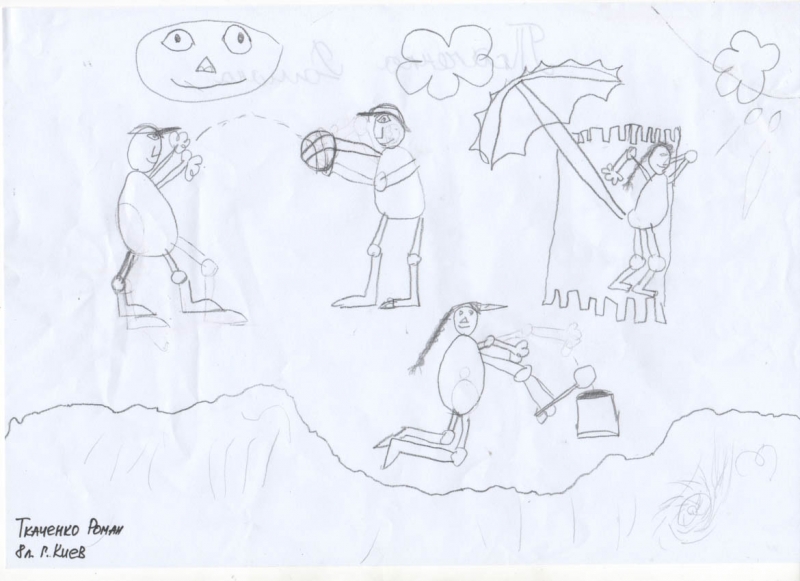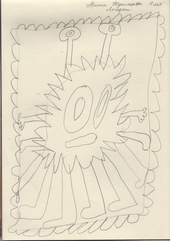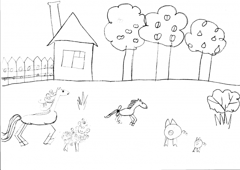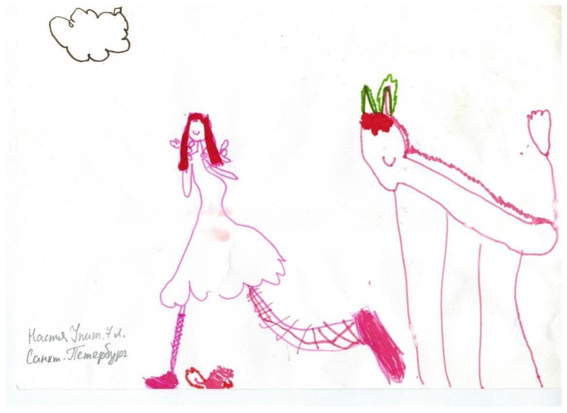 Условия: нужно художественно раскрасить рисунок ребенка, постараться передать объем и материальность того, что ребенок нарисовал.